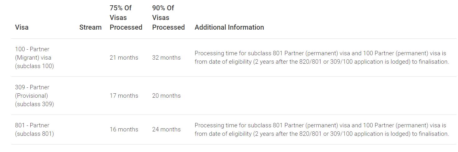 All other requirements of the application must be satisfied in the usual way. The application for a partner visa is now in most cases a 2-stage process. May How often are the processing times for visa offices updated?